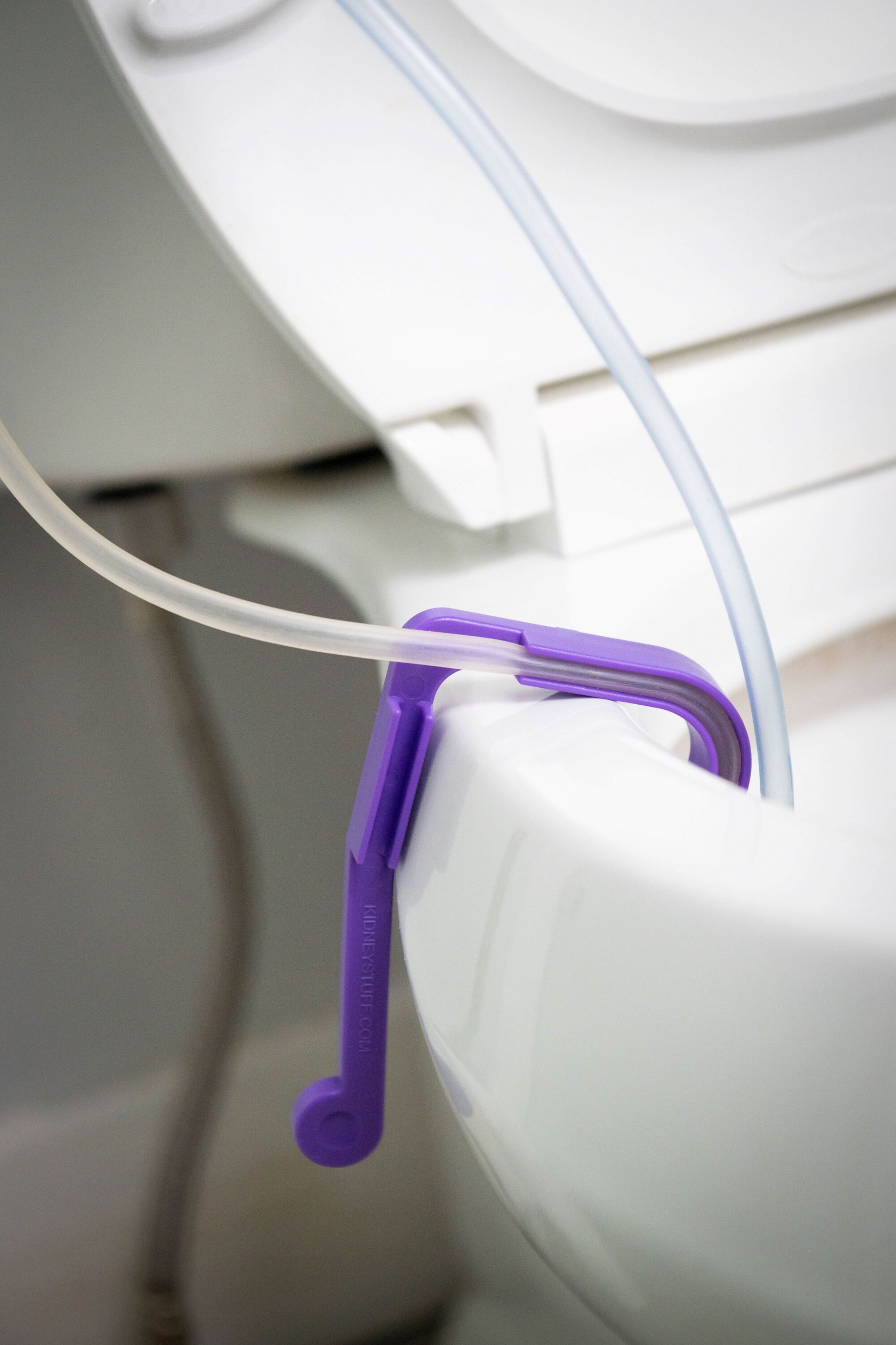 Drain-Away Clips Drain-Away PD clips fit right onto the rim of your toilet for easy effluent disposal. Just clip-attach tubing- lower the seat- and drain. Price: $12.50